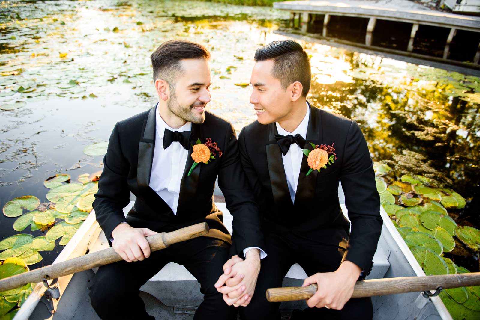 The venue offers various options for outdoor and indoor spaces, such as the lakefront, gardens, or the mansion’s grand room and courtyard. LGBTQ+ weddings at Arrow Park are celebrated with inclusivity – with staff welcoming diverse couples and tailoring weddings to fit their unique vision.